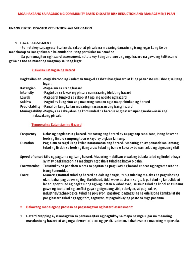 Ito ay tumutukoy sa mga hakbang na dapat gawin bago ang pagtama ng sakuna kalamidad at hazard na may layuning maiwasan o mapigilan ang. Tumutukoy sa pagsusuri sa lawak sakop at pinsala na maaaring danasin ng isang lugar kung ito ay mahaharap sa isang sakuna o kalamidad sa isang partikular na panahon. Hazard and vulnerability assessment disaster risk reduction climate change adaptation and urban resilience.