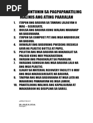Mga Alituntunin Sa Pagpapanatiling Malinis Ang Ating Paaralan Pdf